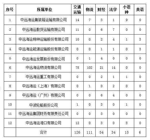 三、中远海运2018年校园招聘需求情况