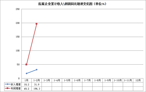 2017年1-2月份,安徽省属企业累计实现营业收入968.6亿元、利润总额39.6亿元,同比增长31.9%和196.3%;累计实现劳动生产总值198.4亿元,同比增长26.2%。其中,2月份,省属企业实现营业收入490.7亿元,环比下降1.4%,实现利润总额21.3亿元,环比增长14.1%。月末资产总额13434.9亿元、所有者权益总额4879.7亿元,同比增长6.5%和9.9%。与全国省级监管企业相比,省属企业资产总额、营业收入、利润总额均位居前列。