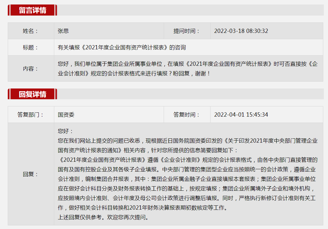 2.有关填报《2021年度企业国有资产统计报表》的咨询。