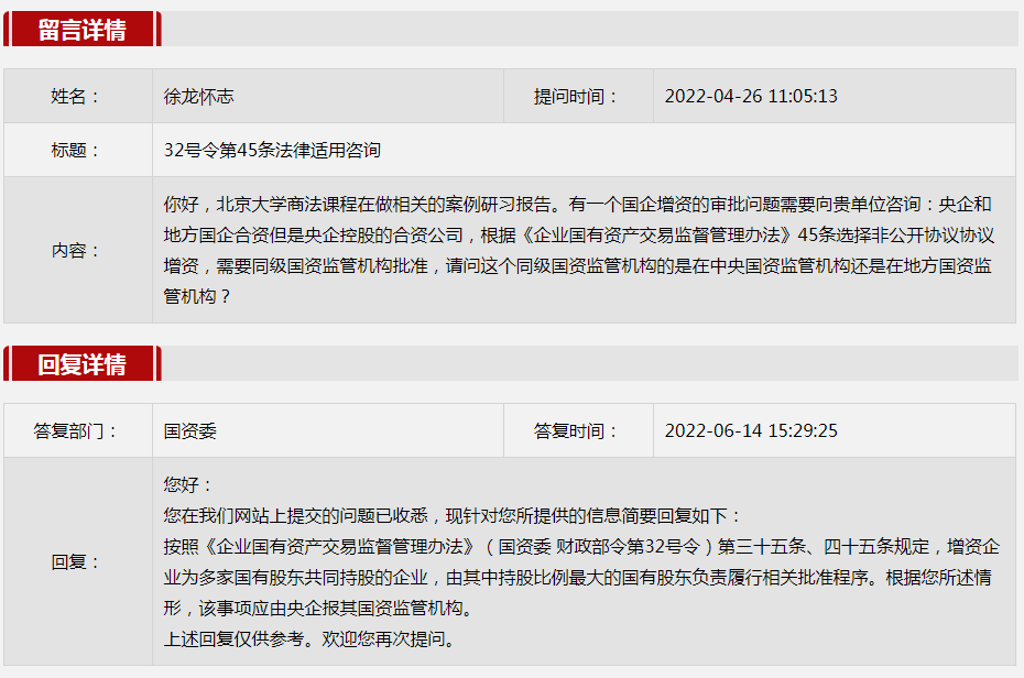 4.关于《企业国有资产交易监督管理办法》第45条法律适用范围的问题。