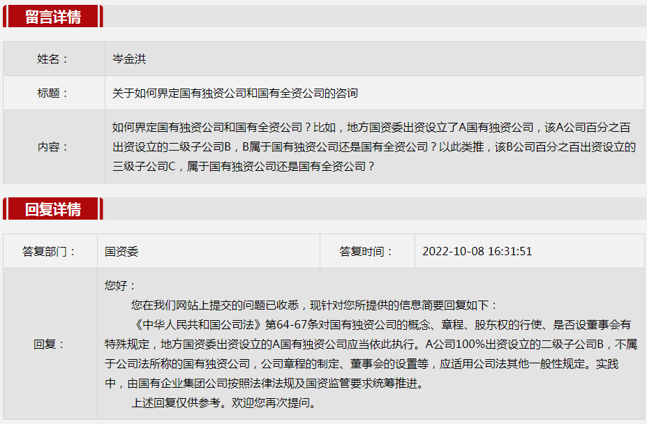 2.关于如何界定国有独资公司和国有全资公司的咨询。