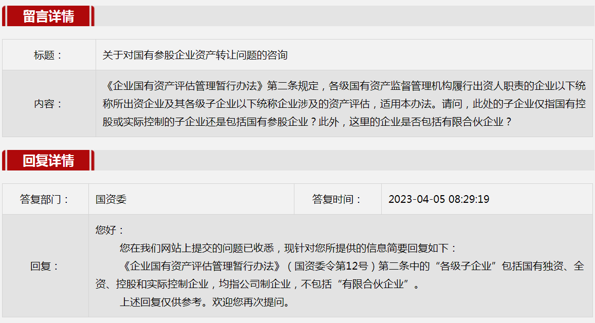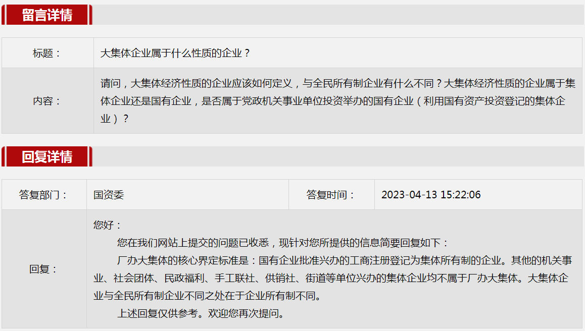2023年4月国资委网站政务咨询栏目部分网友提出的咨询,我们初步做出了认真的回应,现选择五条关注度高、点击量高的问题,再次推荐分享。