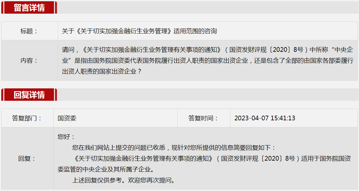 3.关于《关于切实加强金融衍生业务管理》适用范围的咨询。