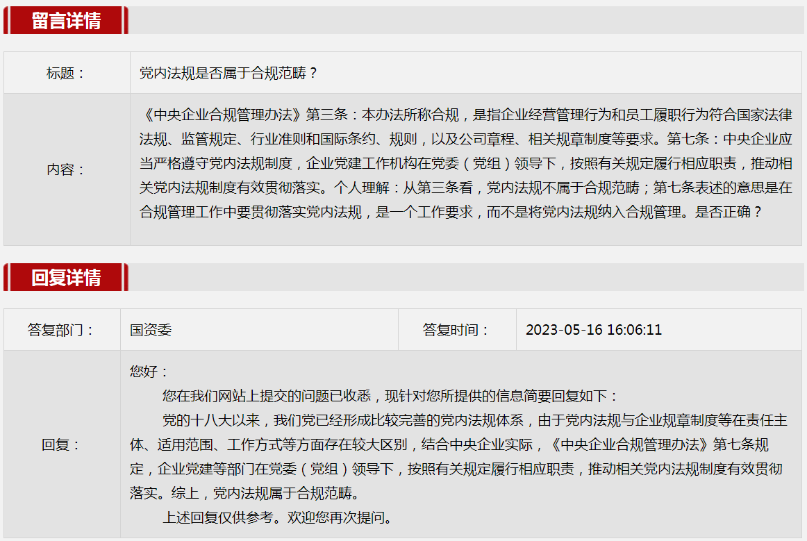 2023年5月国资委网站政务咨询栏目部分网友提出的咨询,我们初步做出了认真的回应,现选择五条关注度高、点击量高的问题,再次推荐分享。