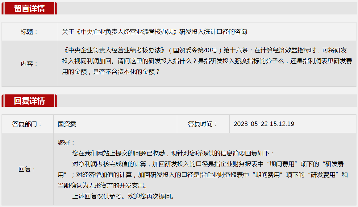 4.关于《中央企业负责人经营业绩考核办法》研发投入统计口径的咨询。