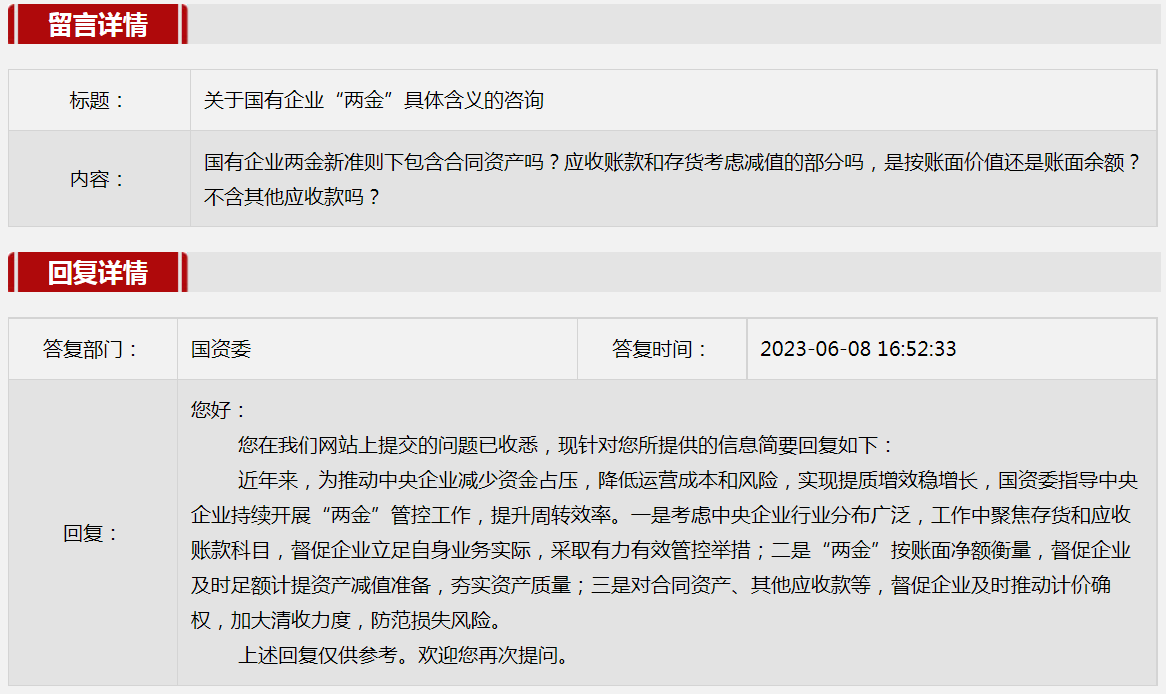 2.关于国有企业“两金”具体含义的咨询。