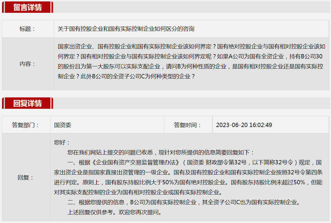 3.关于国有控股企业和国有实际控制企业如何区分的咨询