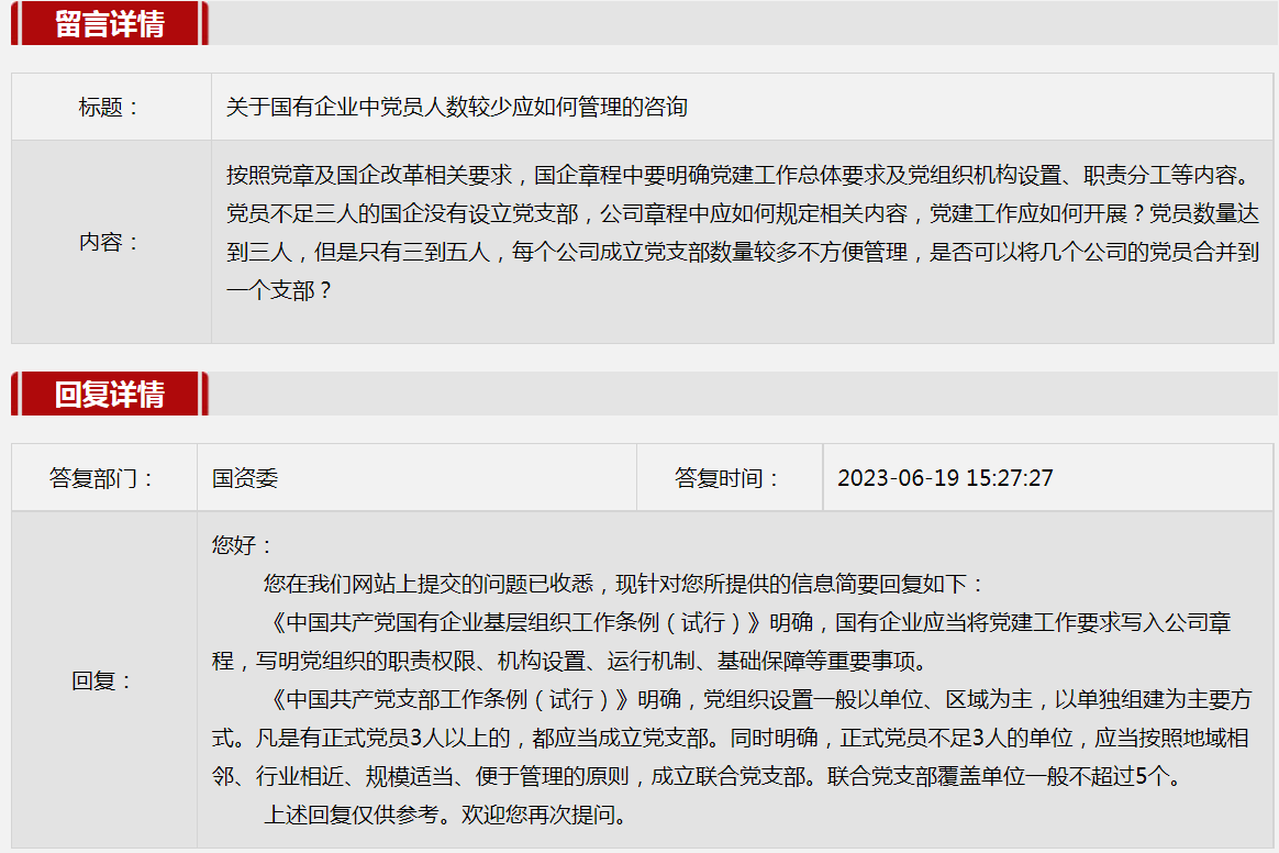4.关于国有企业中党员人数较少应如何管理的咨询。