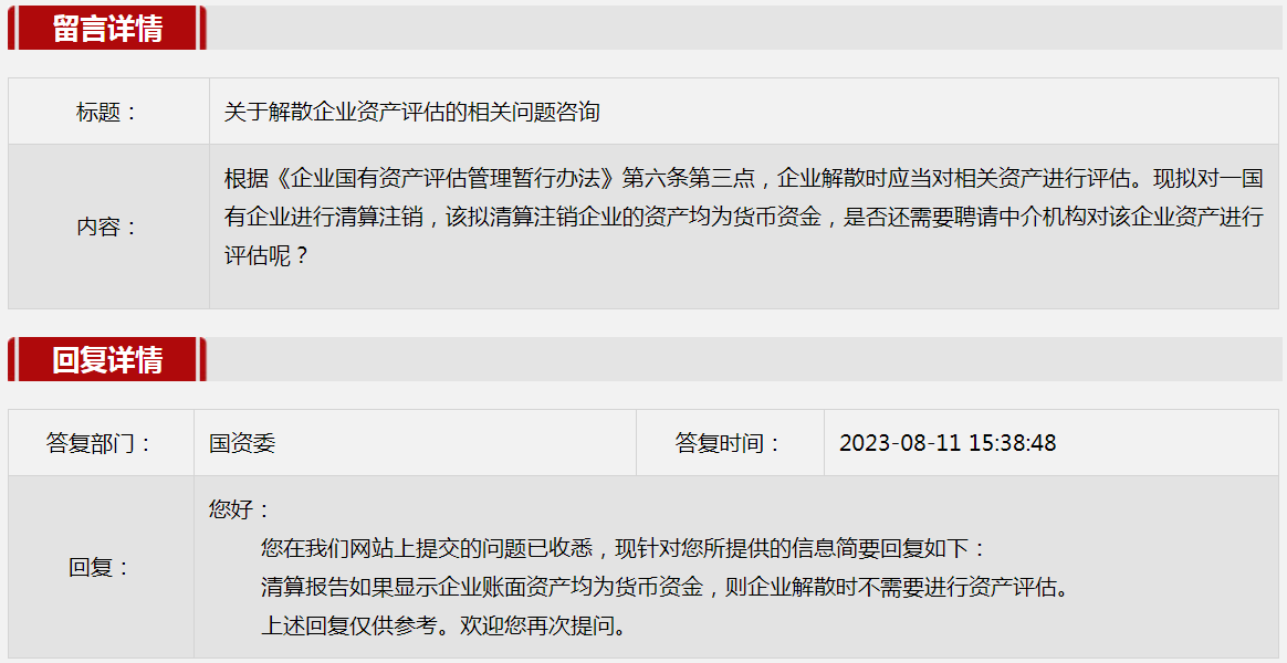 3.关于解散企业资产评估的相关问题咨询。