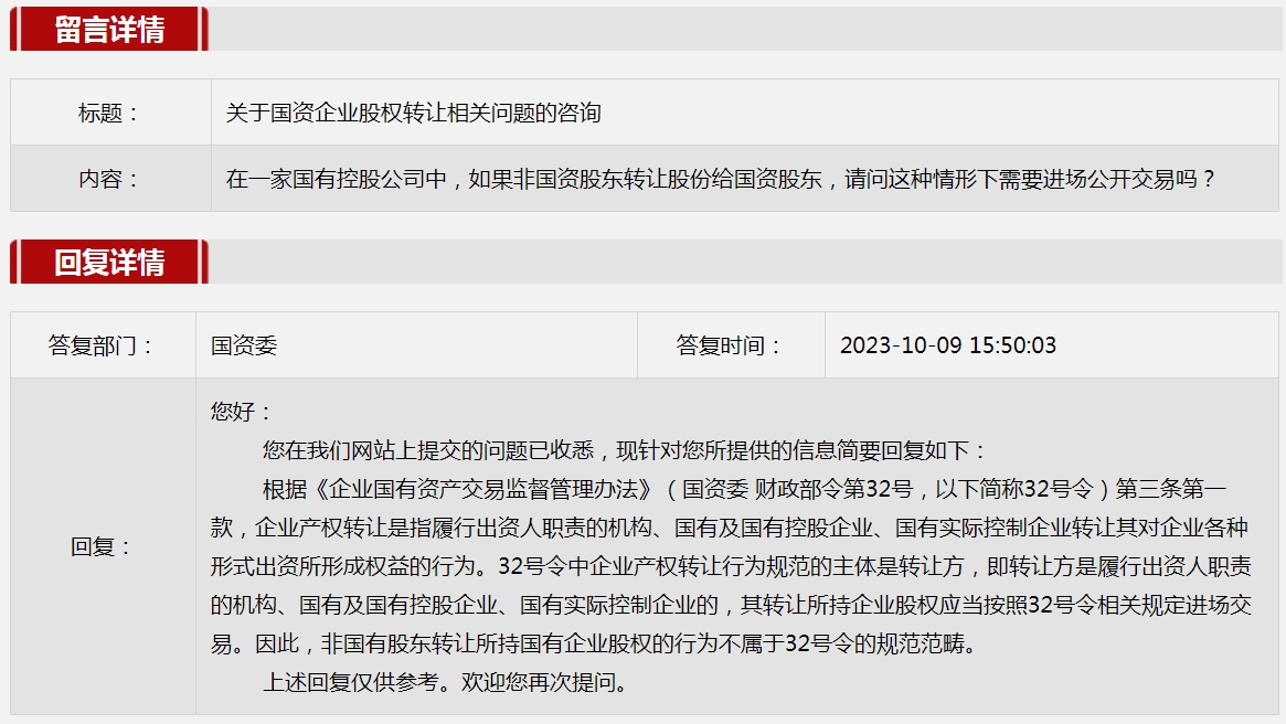 2023年10月国资委网站政务咨询栏目部分网友提出的咨询,我们初步做出了认真的回应,现选择五条关注度高、点击量高的问题,再次推荐分享。