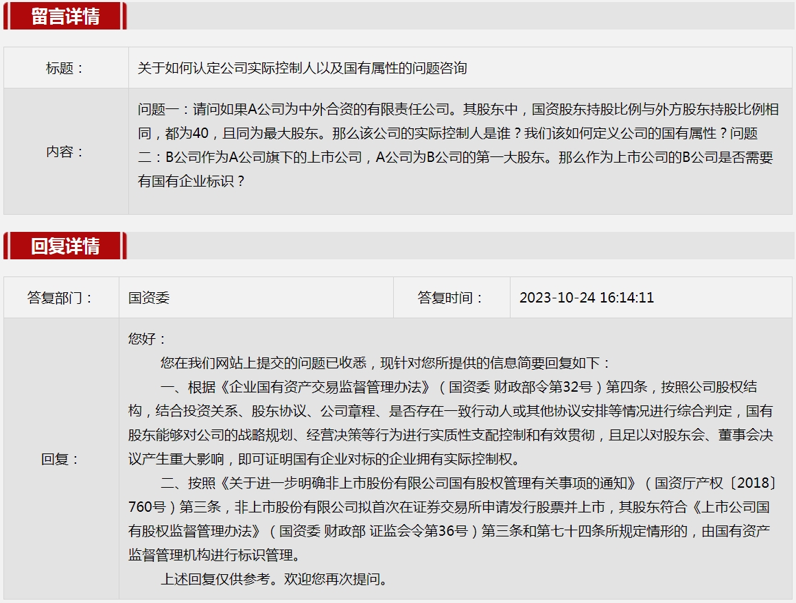 4.关于如何认定公司实际控制人以及国有属性的问题咨询。