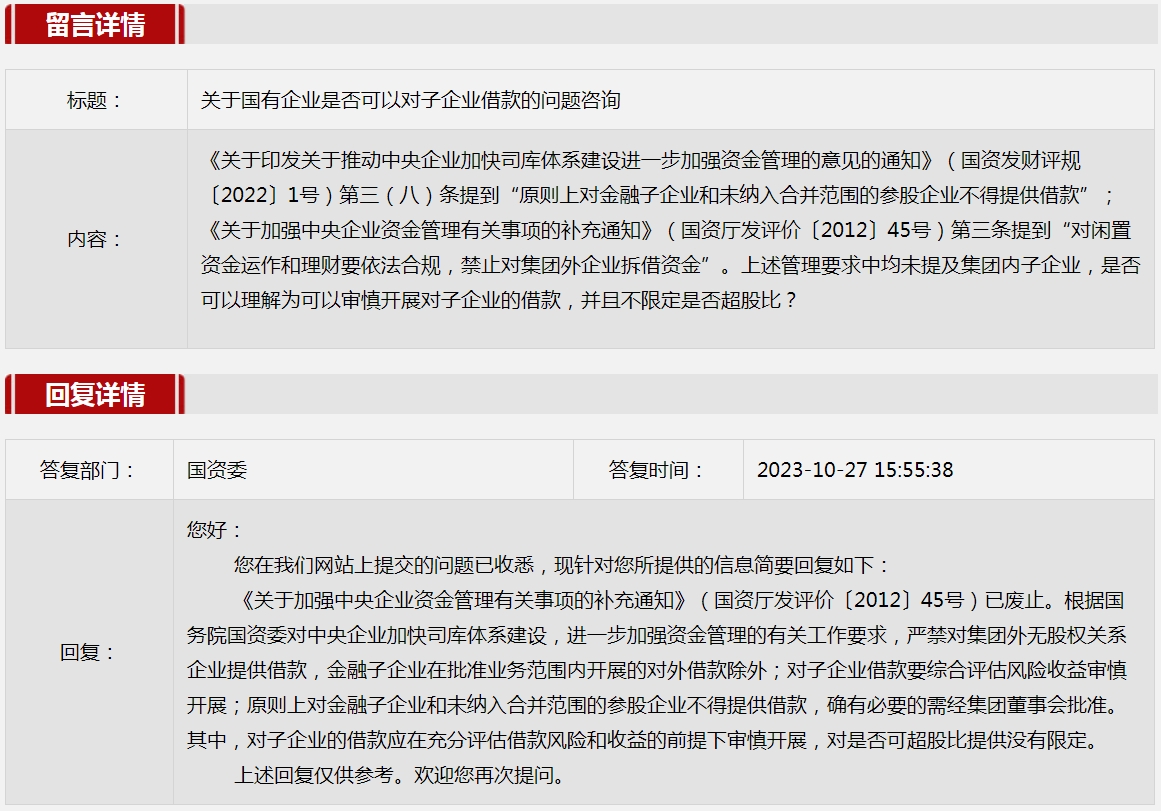 5.关于国有企业是否可以对子企业借款的问题咨询。