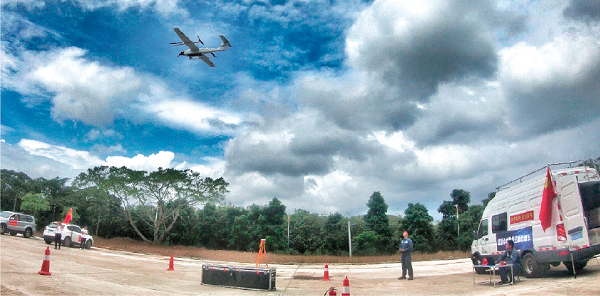 广东省输变电出动垂直起降固定翼无人机对受灾地区开展“套耕式”大规模勘灾抢险,属国内首次。(杨惠平 摄)