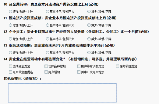 企业效益下滑。12月份,主营业务成本指数为53.8%,较上月回落2.3个百分点;业务利润指数为48.9%,较上月回落2.3个百分点至荣枯线以下,反映出企业经济效益未能延续前四个月的好转趋势,再次出现下滑。