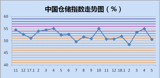 中国仓储指数走势图(%)