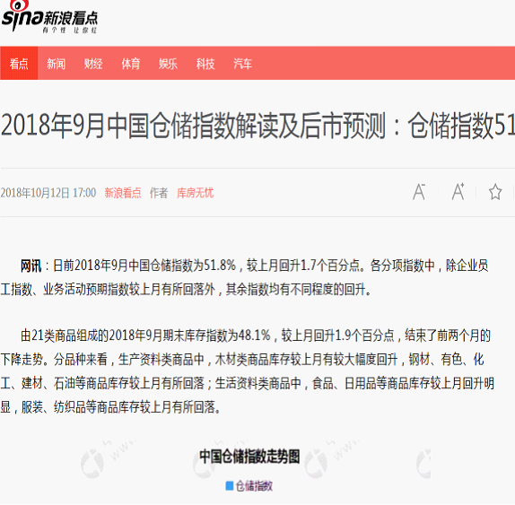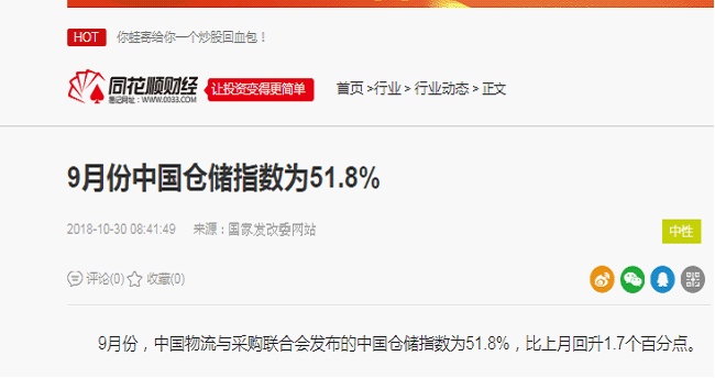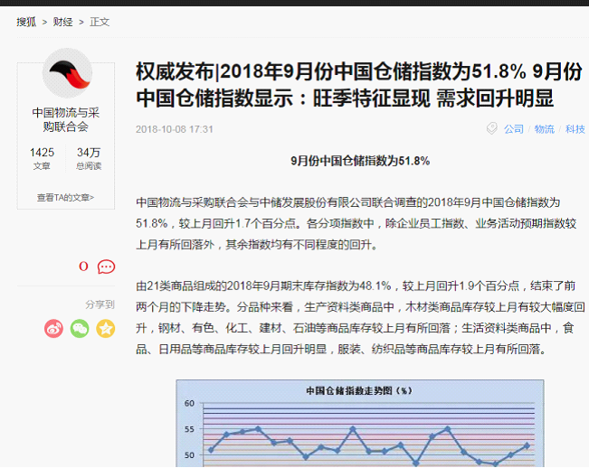 2018年10月中国仓储指数为51.7%