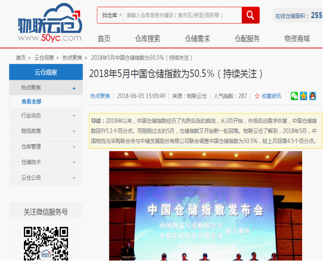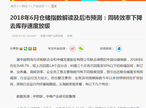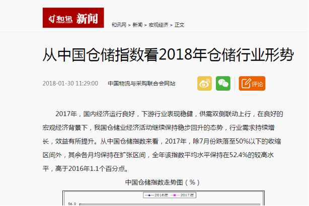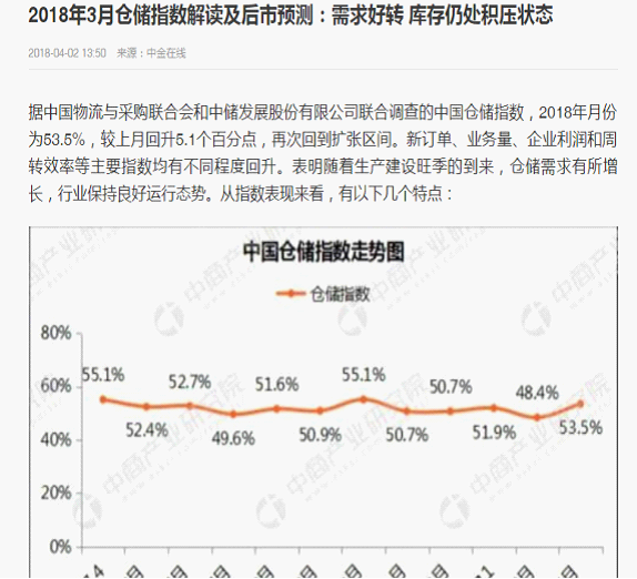 从中国仓储指数看2018年仓储行业形势