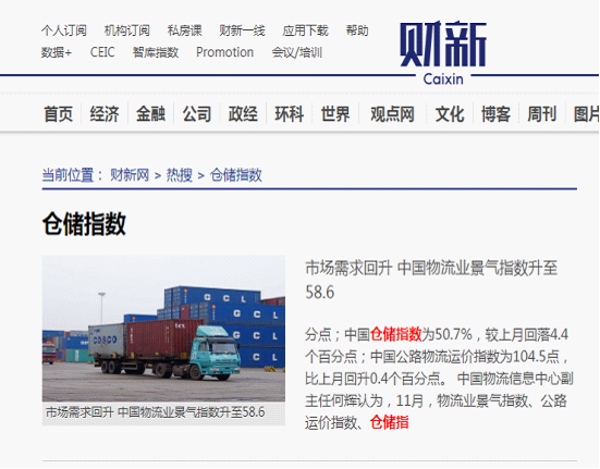 11月中国仓储指数显示:需求保持旺盛 行业运行向好