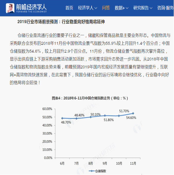 2018年11月中国仓储指数为54.6%