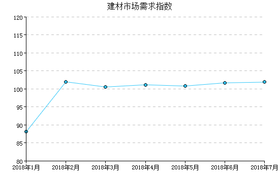 2018年7月,建材市场需求指数为101.90,比上月增加0.20,比去年同月减少3.91。 图 7:建材市场需求指数