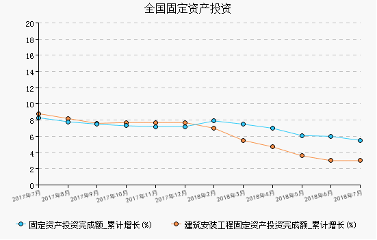 2018年7月全国固定资产投资累计增速增长5.5%,其中建筑安装工程投资累计增速增长3%。 图 4:全国固定资产投资情况