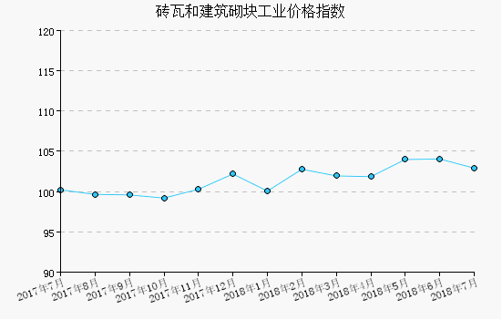 砖瓦和建筑砌块工业价格指数 (上月=100) |