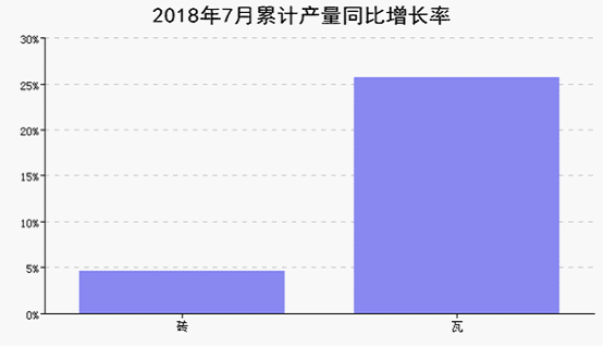 2018年7月规模以上工业增加值同比增长6.00%,累计增长增长6.60%。 跟其他工业行业相比,建材行业增加值增速低于设备制造、电器机械和器材制造、电力、热力生产及供应等行业,高于化学原料和化学品制造、黑色金属冶炼和压延、有所金属冶炼和压延等行业。