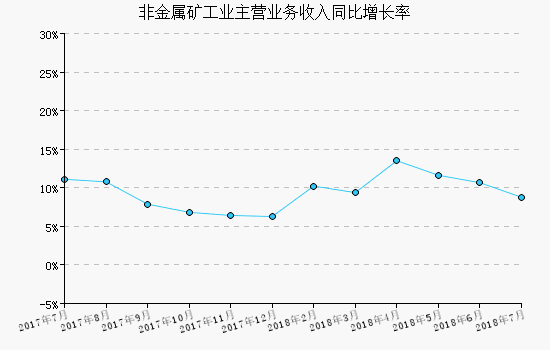 本月全国非金属矿工业产量同比去年同月减少5.69%,累计增速比上月增长56.03%。