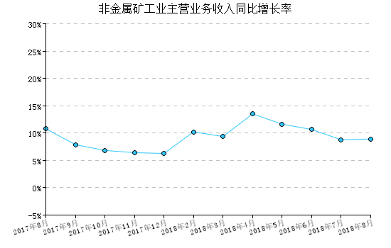 本月全国非金属矿工业产量同比去年同月减少6.02%,累计增速比上月增长5.81%。