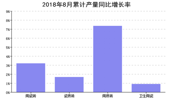 本月全国建筑卫生陶瓷工业产量同比去年同月增长3.15%,累计增速比上月减少7.16%。