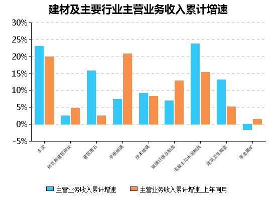 2018年8月规模以上工业增加值同比增长6.10%,累计增长6.50%。 跟其他工业行业相比,建材行业增加值增速低于设备制造、电器机械和器材制造、电力、热力生产及供应等行业,高于化学原料和化学品制造、黑色金属冶炼和压延、有所金属冶炼和压延等行业。