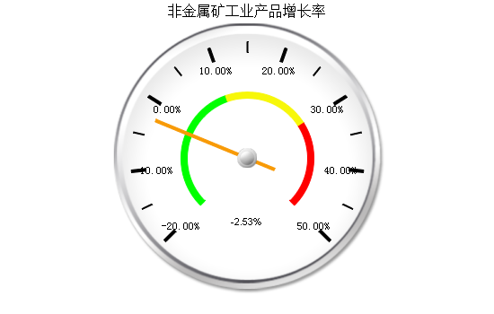 本月全国非金属矿工业产量同比去年同月减少2.53%,累计增速比上月减少52.62%。