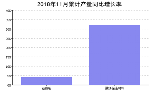 2018年11月规模以上工业增加值同比增长5.40%,累计增长增长6.30%。 跟其他工业行业相比,建材行业增加值增速低于设备制造、电器机械和器材制造、电力、热力生产及供应等行业,高于化学原料和化学品制造、黑色金属冶炼和压延、有所金属冶炼和压延等行业。