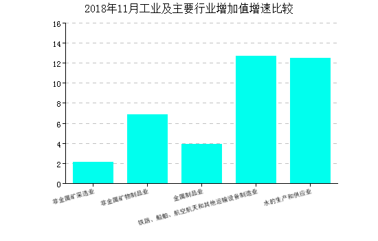2018年11月规模以上工业增加值同比增长5.40%,累计增长增长6.30%。 跟其他工业行业相比,建材行业增加值增速低于设备制造、电器机械和器材制造、电力、热力生产及供应等行业,高于化学原料和化学品制造、黑色金属冶炼和压延、有所金属冶炼和压延等行业。