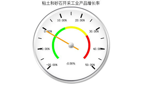 本月全国粘土和砂石开采工业产量同比去年同月减少0.56%,累计增速比上月减少71.33%。