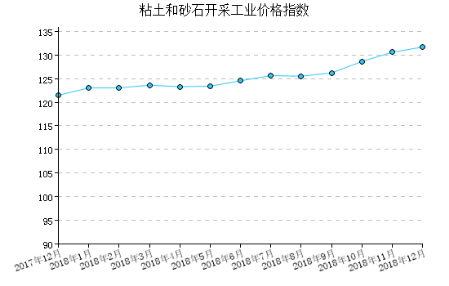 粘土和砂石开采工业价格指数 (2010年12月=100) |