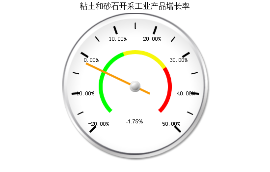本月全国粘土和砂石开采工业产量同比去年同月减少1.75%,累计增速比上月增长212.56%。