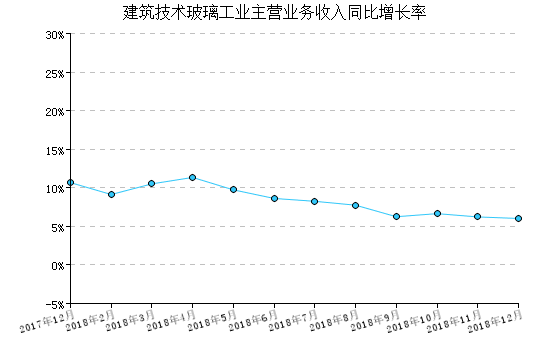 2018年12月规模以上工业增加值同比增长5.70%,累计增长增长6.20%。 跟其他工业行业相比,建材行业增加值增速低于设备制造、电器机械和器材制造、电力、热力生产及供应等行业,高于化学原料和化学品制造、黑色金属冶炼和压延、有所金属冶炼和压延等行业。