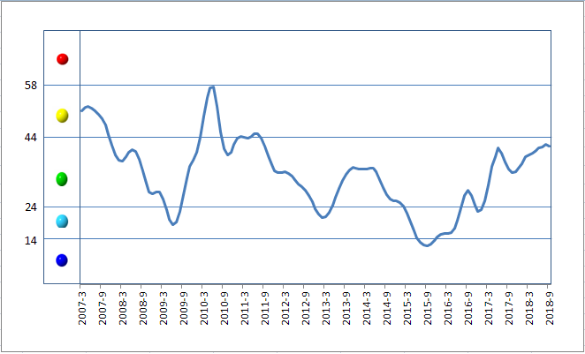 中色钨钼行业月度景气指数监测结果显示,2018年9月,中色钨钼行业景气指数为40.72,较8月份出现回落,但依然运行在“正常”空间;先行合成指数为51.27,较8月份比略有回落。近13个月以来中色钨钼行业月度景气指数见表1。
