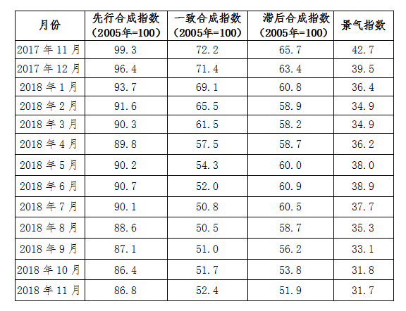 综合景气指数由9项指标构成,即先行指数和一致指数的构成指标。