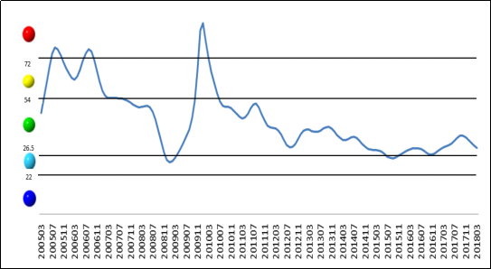表1 2017年3月至2018年3月中色铜产业月度景气指数