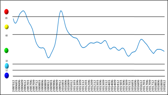 表1 2017年12月至2018年12月中色铅锌产业月度景气指数