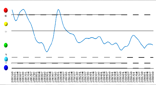 表1 2017年10月至2018年10月中色铅锌产业月度景气指数