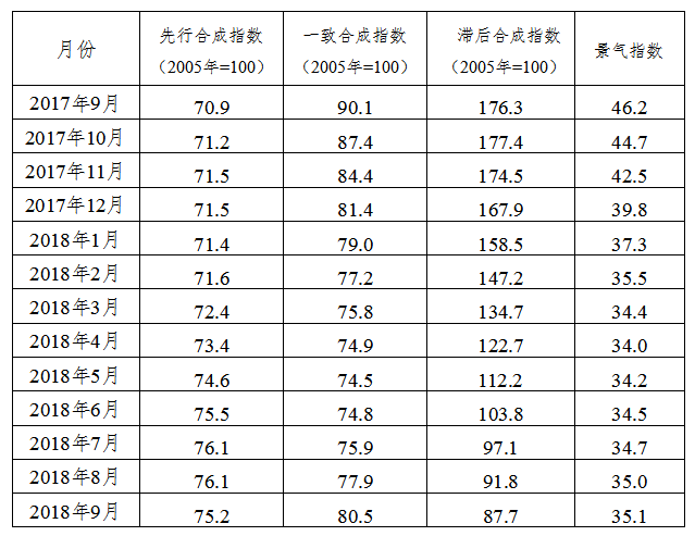 综合景气指数由10项指标构成,即先行指数和一致指数的构成指标。