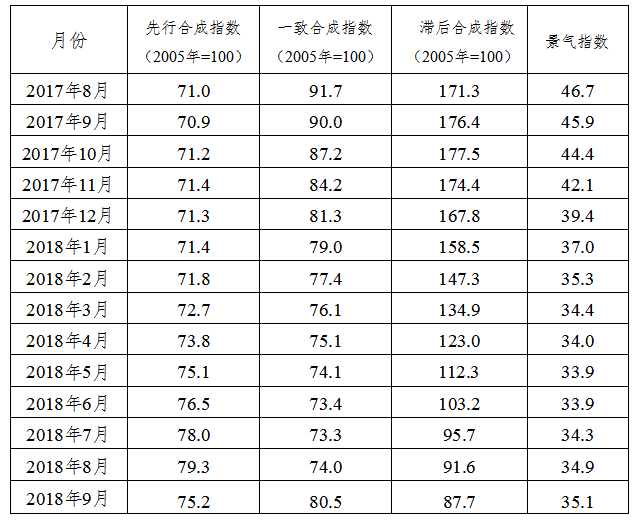 综合景气指数由10项指标构成,即先行指数和一致指数的构成指标。