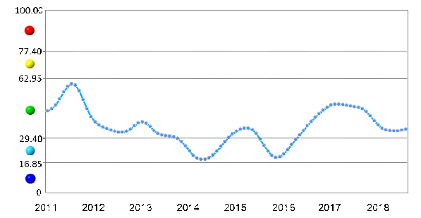 中色铝冶炼产业月度景气指数显示,2018年以来,景气指数始终处于“正常”区间下部调整,继7月份以来,连续第二个月小幅回升,8月份景气指数为34.9,环比回升0.6点。中色铝冶炼产业月度景气指数走势见图1。