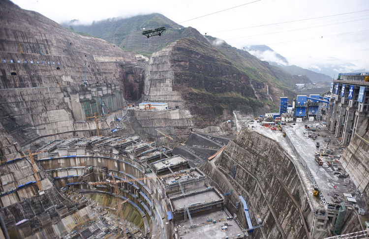 这是6月26日在四川省宁南县拍摄的白鹤滩水电站建设工地。
