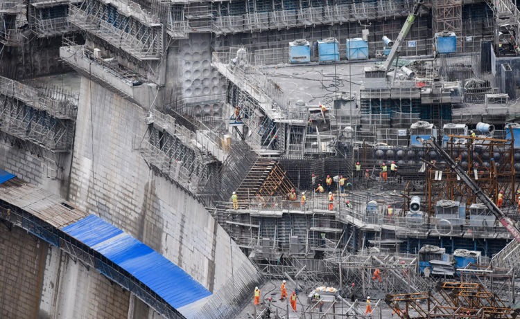 这是6月26日在四川省宁南县拍摄的白鹤滩水电站建设工地。(记者 薛玉斌 摄)
