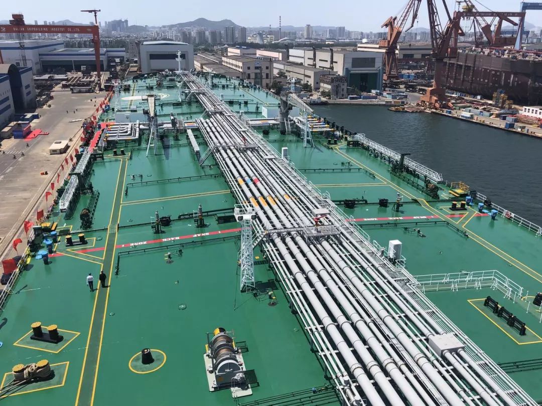 6月22日,中船重工所属大连船舶重工集团有限公司设计建造、中船集团上海船舶研究设计院负责智能系统总体设计的全球首艘超大型智能原油船(VLCC)“凱征”号命名交付,该船也是全球首艘获得智能货物管理符号(C)的智能船舶。大船集团有关负责人表示,该船的成功建造不仅在世界大型远洋智能船舶发展进程中具有里程碑意义,也代表中国开启了全球超大型油船智能航运新篇章。