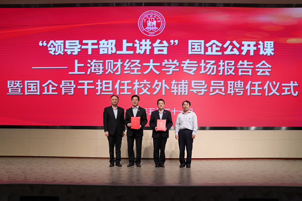 5月21日,由中国国新与上海财经大学联合举办的“‘领导干部上讲台’国企公开课暨国企骨干担任校外辅导员聘任仪式”在沪举行。中国国新党委书记、董事长周渝波作了“创新资本运营 服务实体经济——中国国新国有资本运营的探索实践”主题报告,上海财经大学党委书记许涛主持活动并致欢迎辞,国务院国资委宣传工作局副局长刘福广,中国国新副董事长、党委副书记周育先,上海财经大学党委副书记朱鸣雄,党委常委、宣传部长章益国等出席活动。
